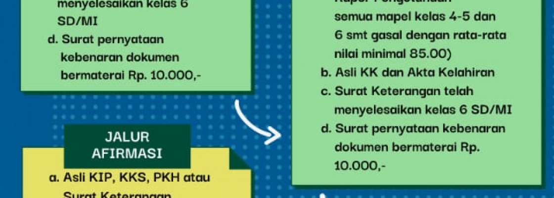 4. Berkas daftar ulang: Bukti cetak/Print Out daftar ulang yang sudah di sahkan admin PPDB SMP Negeri 1 Turen; Surat pernyataan kebenaran berkas bermaterai Rp 10.000,- yang diunggah pada saat pendaftaran; Materai Rp. 10.000,-